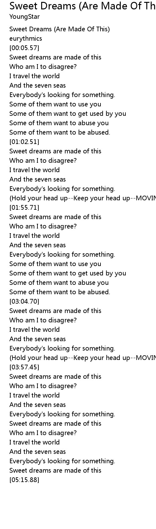 Your Sweet Dreams Lyrics picture are geared up in this page. Sweet Dreams Lyrics are a subject that is being searched for and favored by netizens now. You can Save the Sweet Dreams Lyrics here. Save all royalty-free pic.